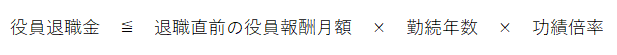 『功績倍率法』は、「退職直前での役員報酬の月額」と「勤続年数」と「功績倍率」を乗じた金額を『役員退職金の社会通念上相当の金額」とする方法です。